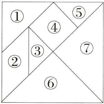 2. 你能用七巧板拼出一个等腰梯形吗?再用同样的这几块七巧板拼出一个三角形。请画一画(标出序号)。(3分)