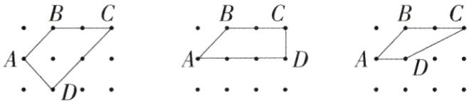 3. [新题型]在下面的点子图中再选一个点D,使四边形ABCD成为一个梯形,请你画一画。(画出三种不同的情况)(6分)