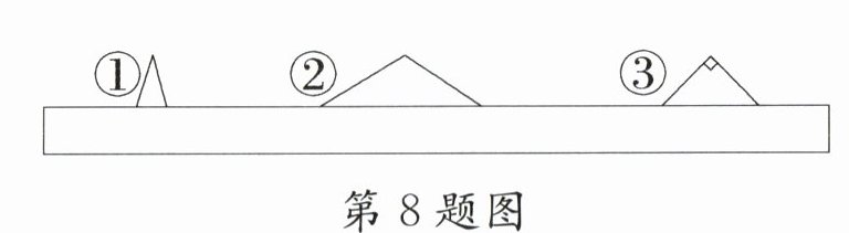 8. 如图,三个三角形都被一张纸条遮住了一部分,你能确定它们各是什么三角形吗?(按角分)
