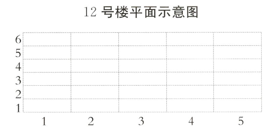 5. 下面是小美家所在小区的12号楼的平面示意图,图上“列”表示楼房的单元,“行”表示楼房的层数。按下面的条件,标出各家所在的位置。(9分)