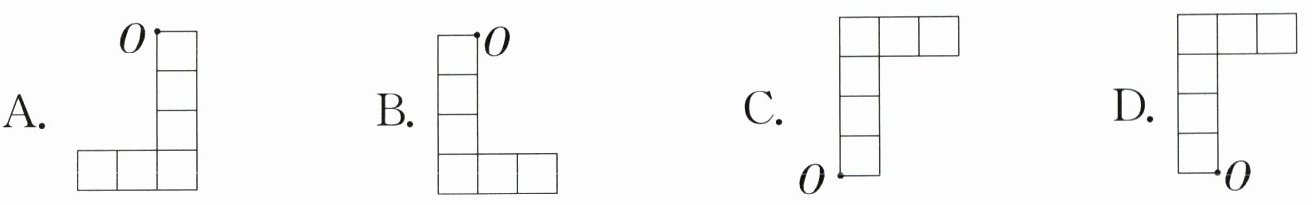 (3)如图,将图形绕点O顺时针旋转90°得到的图形是( )。