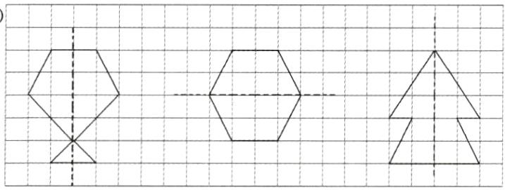 (1)画出下面各图形的另一半,使它们成为轴对称图形。