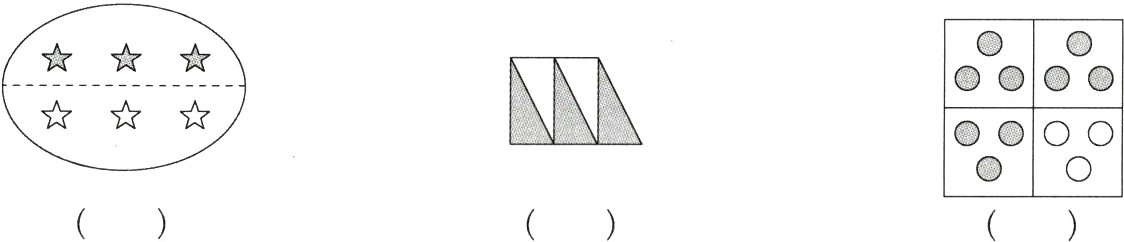 4.“一次课间休息的时间是$\frac{1}{6}$小时”,是把( )看作单位“1",平均分成( )份,( )