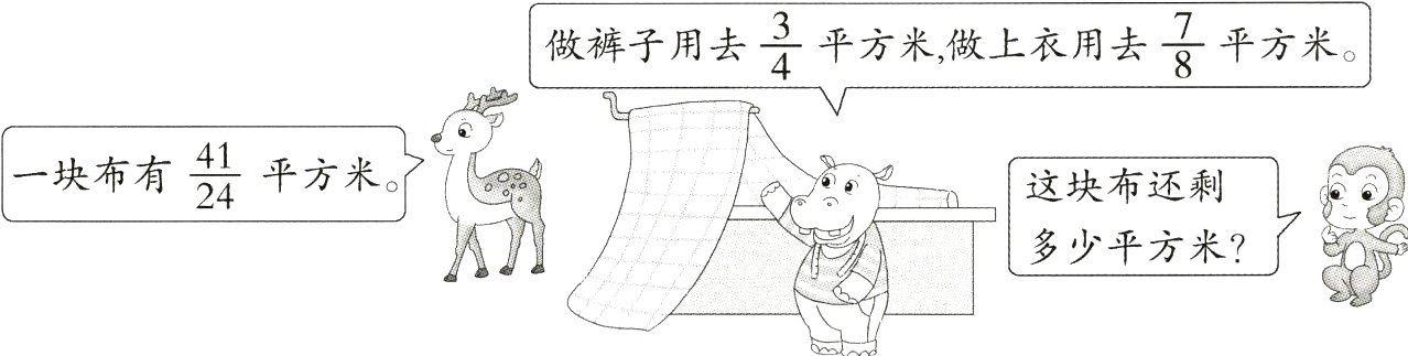 $\frac{41}{24}-\frac{3}{4}-\frac{7}{8}=\frac{1}{12}$(平方米) 答:这块布还剩$\frac{1}{12}$平方米。