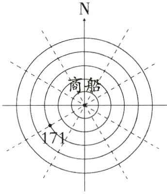 2. [新题型]甲海盗劫持了乙国商船,通过雷达搜索显示,编号是171号的护卫舰在附近执行护航任务,如图。(雷达图中每相邻两个圆之间的距离表示10km)