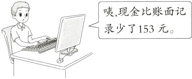[解析]现金比账面记录少了 153 元,说明记账时把小数点往右点错了一位,这样账面上的金额就增大了 9 倍,就是 153 元,所以记错的那笔账实际收到的现金是 153÷9 = 17(元)。