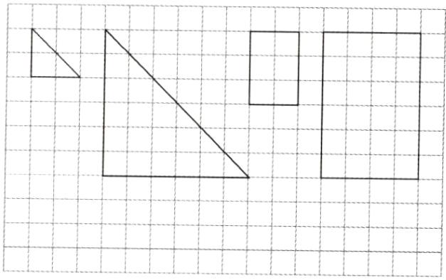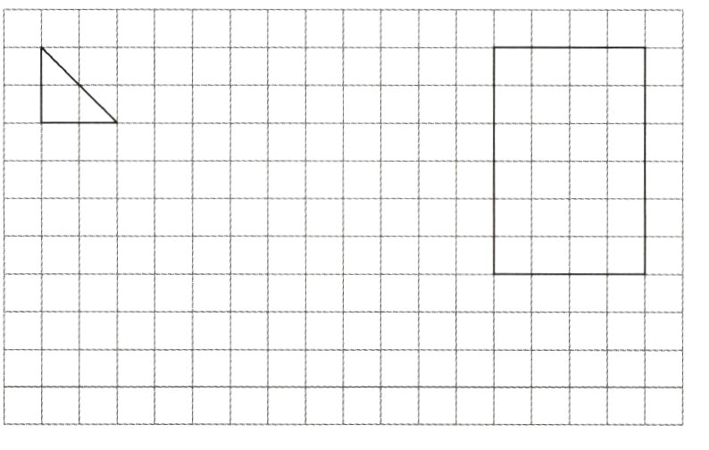 (1)按3∶1的比画出三角形放大后的图形。按1∶2的比画出长方形缩小后的图形。(4分)