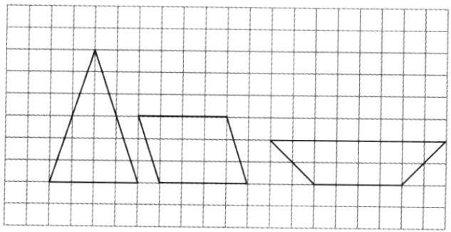 2.[开放题]在下面的方格内,分别画一个面积是12 cm²的三角形、平行四边形和梯形。(每个小方格表示1 cm²)(6分)