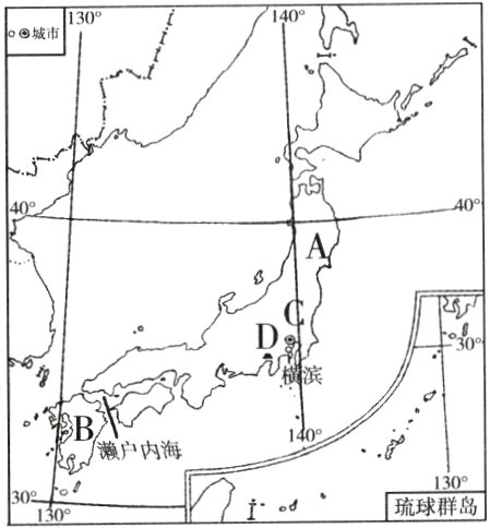 (2)日本是______洋中的一个岛国,气候具有______(海洋性或大陆性)特征;地形以______和丘陵为主,主要位于______板块与______板块交界地带,境内多火山,著名的活火山D为______,该山也是日本最高的山峰。