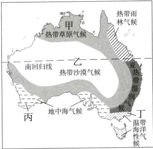 (东营中考精选)读澳大利亚气候类型分布示意图,回答14~15题。
