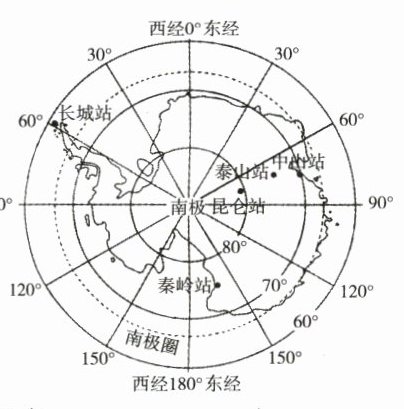 每年,我国科考队员都要赴南极考察。考察结束后,大部分科考队员返回国内,留下少数队员维持站区的正常运转和开展部分考察工作,等待下一批科考队员前来交接,这个过程被称为“越冬”。下面是南极地区示意图。据此回答6~7题。
