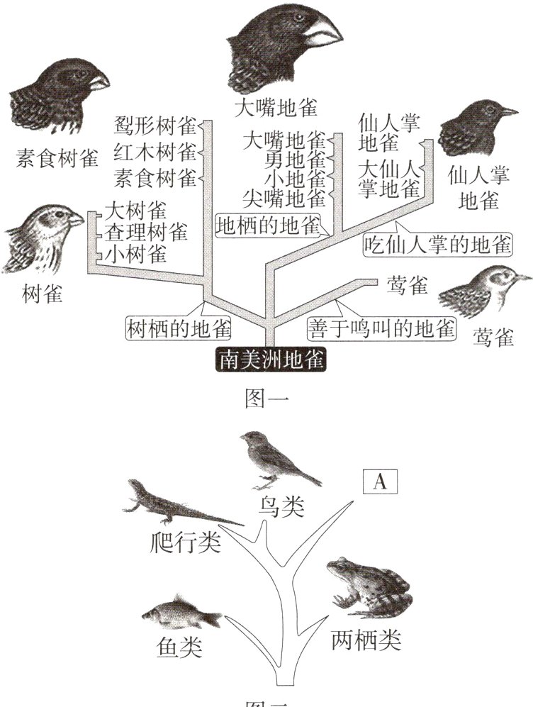 (1)从图一中可以看出这些不同的地雀都是由______这一共同祖先进化而来的。在地雀的祖先中具有不定向的________,为其进化提供了原始材料。