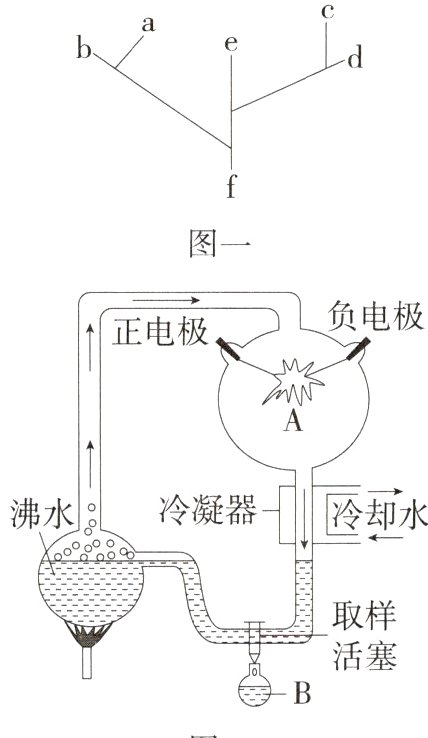 (3)图二中正、负电极接通进行火花放电是模拟原始地球的闪电现象,这主要为该实验提供了能量条件。实验结束后可在B装置的液体里检测到氨基酸等有机小分子物质。