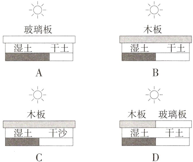 2.(2024山东滕州期末)某同学准备探究“水分对鼠妇分布的影响”,他应该选择下列装置中的(B8261001) ( )