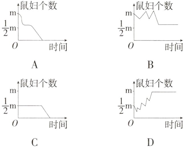 1.(2024陕西长安期末)探究“光对鼠妇分布的影响"实验中,在阴暗和明亮环境中各放10只鼠妇,下列能准确表示阴暗环境中鼠妇数量变化曲线(m表示所有鼠妇数量)的是 ( )
