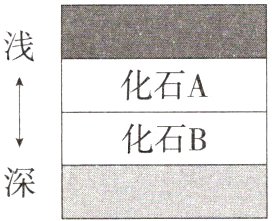D 化石B比化石A埋得深,表明化石B形成得早,化石A形成得晚。因此物种B比物种A形成的时间早,物种B的结构更简单、低等,但不能说明物种A由物种B进化而来。