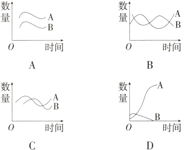 2.教材变式·P74图片变式(2024山东平阴期末)在美国的罗亚岛上,狼是驼鹿唯一的天敌,而驼鹿也是狼唯一的食物来源,下列哪一项能正确表示驼鹿与狼的数量变化关系(B8262005) ( )