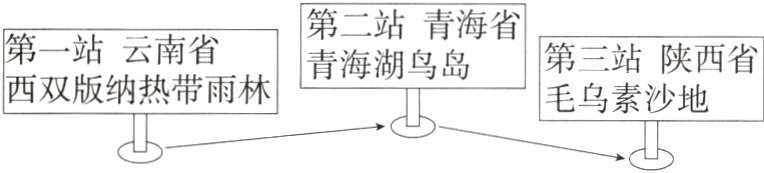 17.新中考·开放性试题 (2024陕西中考B卷)(14分)“读万卷书,行万里路。”如图是小秦的旅行路线。请你帮助小秦完善其旅行分享。