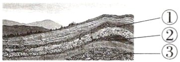 17.(2024山东单县期中,2,★☆☆)古生物学家在如图所示的不同地层中发现单细胞藻类、三叶虫和恐龙等古生物化石,地层③中只发现了单细胞藻类化石。下列有关论述错误的是(B8251002) ( )