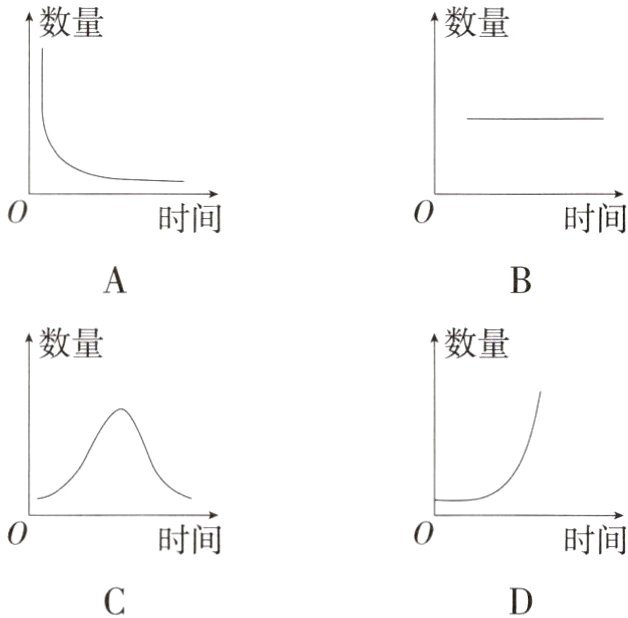 6.(跨数学·曲线分析)(2024山东阳信期末)酿酒利用的是酵母菌在有氧条件下快速繁殖和无氧条件下产生酒精的特点,主要经过加料→接种(酵母菌)→通气培养→密封发酵等阶段。从接种后到密封前这一阶段酵母菌数量的变化曲线应为( )