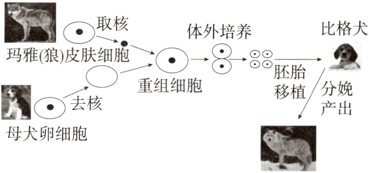 A 由题图可知,克隆北极狼的细胞核来自玛雅,所以克隆北极狼几乎和提供细胞核的玛雅一模一样,因为细胞核是遗传信息库,控制着生物的发育和遗传。体外培养产生的新细胞染色体的数量和供核细胞一样。
