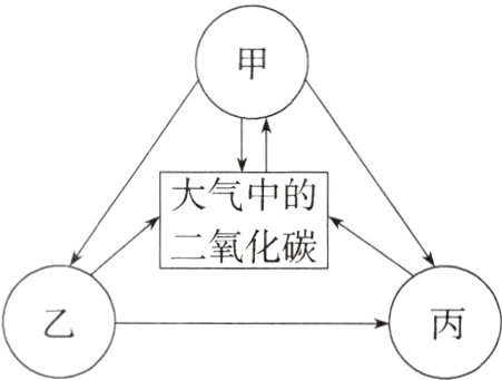 A 图中甲既可以吸收二氧化碳又可以产生二氧化碳,说明甲是生产者;图中甲、乙均有箭头指向丙,因此丙为分解者,能够将动植物遗体等分解并释放出二氧化碳等物质;乙捕食生产者,其遗体等又被分解者分解,因此乙为消费者,A正确。