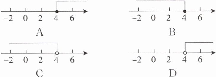 7. [2024·济南天桥区校级月考]不等式$x>4$的解集在数轴上表示正确的是( )