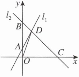 12. 如图,在平面直角坐标系$xOy$中,直线$l_1:y = 2x + 1$与$y$轴交于点$A$,直线$l_2$与$y$轴,$x$轴分别交于点$B$,点$C$,$l_1$与$l_2$交于点$D(1,m)$,连接$OD$,已知$OC$的长为4.