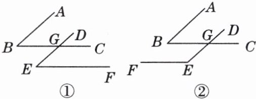 (2)$\angle B+\angle E = 180^{\circ}$.理由如下: 因为$AB// DE$,所以$\angle B+\angle DGB = 180^{\circ}$. 因为$BC// EF$,所以$\angle E=\angle DGB$. 所以$\angle B+\angle E = 180^{\circ}$.