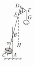 4. [2024·潍坊 情境题·生活应用] 一种路灯的示意图如图所示,其底部支架$AB$与吊线$FG$平行,灯杆$CD$与底部支架$AB$所成锐角$\alpha = 15^{\circ}$. 顶部支架$EF$与灯杆$CD$所成锐角$\beta = 45^{\circ}$,则$EF$与$FG$所成锐角的度数为( )