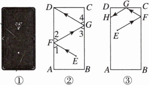(2)如图③,若球在桌面的点E处,经过两次反弹后碰到AD边上的点H处,请你判断EF与GH的位置关系,并说明理由.