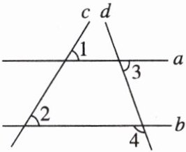 11.(10分)母题 教材P61复习题T4 直线a,b,c,d的位置如图所示,已知∠1 = 58°,∠2 = 58°,∠3 = 70°,求∠4的度数.