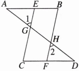∴∠HGF + ∠EFG = 180° - (∠DGH + ∠CGF) + 180° - (∠EFB + ∠GFC) = 360° - (∠DGH + ∠CGF + ∠EFB + ∠GFC) = 180°。