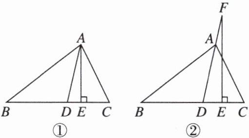 (2)如图②,若把“AE⊥BC”变成“点F在DA的延长线上,FE⊥BC”,∠B = α,∠C = β(α < β),请用含α,β的代数式表示∠F.