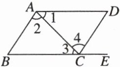 ①$\angle 1 = \angle 3$;②$\angle 2 = \angle 4$;③$AD// BE$且$\angle D = \angle B$.