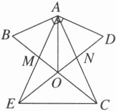 13. 如图,AB⊥AC,AD⊥AE,AB = AD,BC = DE,AE与BC交于点M,AC与DE交于点N.