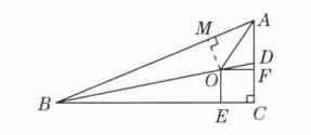 (2) 【解】在 $Rt\triangle ABC$ 中,$AC = 5$,$BC = 12$,由勾股定理得 $AB = 13$。 设 $OE = x$,易得 $AM = AF = 5 - x$,$BM = BE = 12 - x$。 因为 $BM + AM = AB = 13$,所以 $12 - x + 5 - x = 13$,解得 $x = 2$,所以 $OE = 2$。
