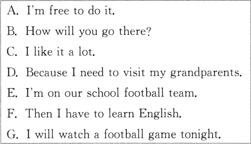 根据对话内容,从下面方框中选出适当的选项补全对话(有两项多余)。