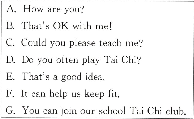 B:Our school will hold a Tai Chi performance(表演)next month. Would you like to take part in it?