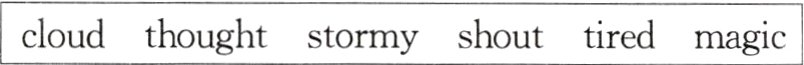 1. clouds 2. storm 3. tiring 4. thought 5. magical