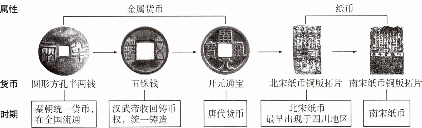认识:金属货币演变为纸币,体现了中国古代经济及商业的发展。