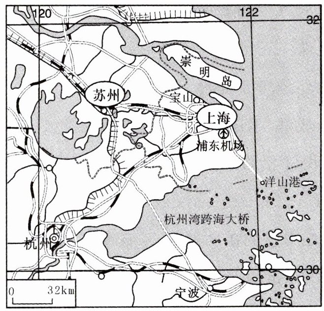 沪@@长江中下游@@水田@@两@@京沪线(答案不唯一)@@黄金水道@@综合@@本题属开放性试题,可从环境保护(控制环境污染)、城市规划、控制人口数量等方面着手回答。
