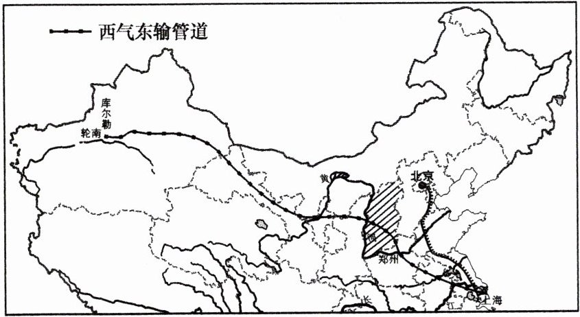 (1)“西气东输”主干管道西起新疆的轮南油气田,东到________。