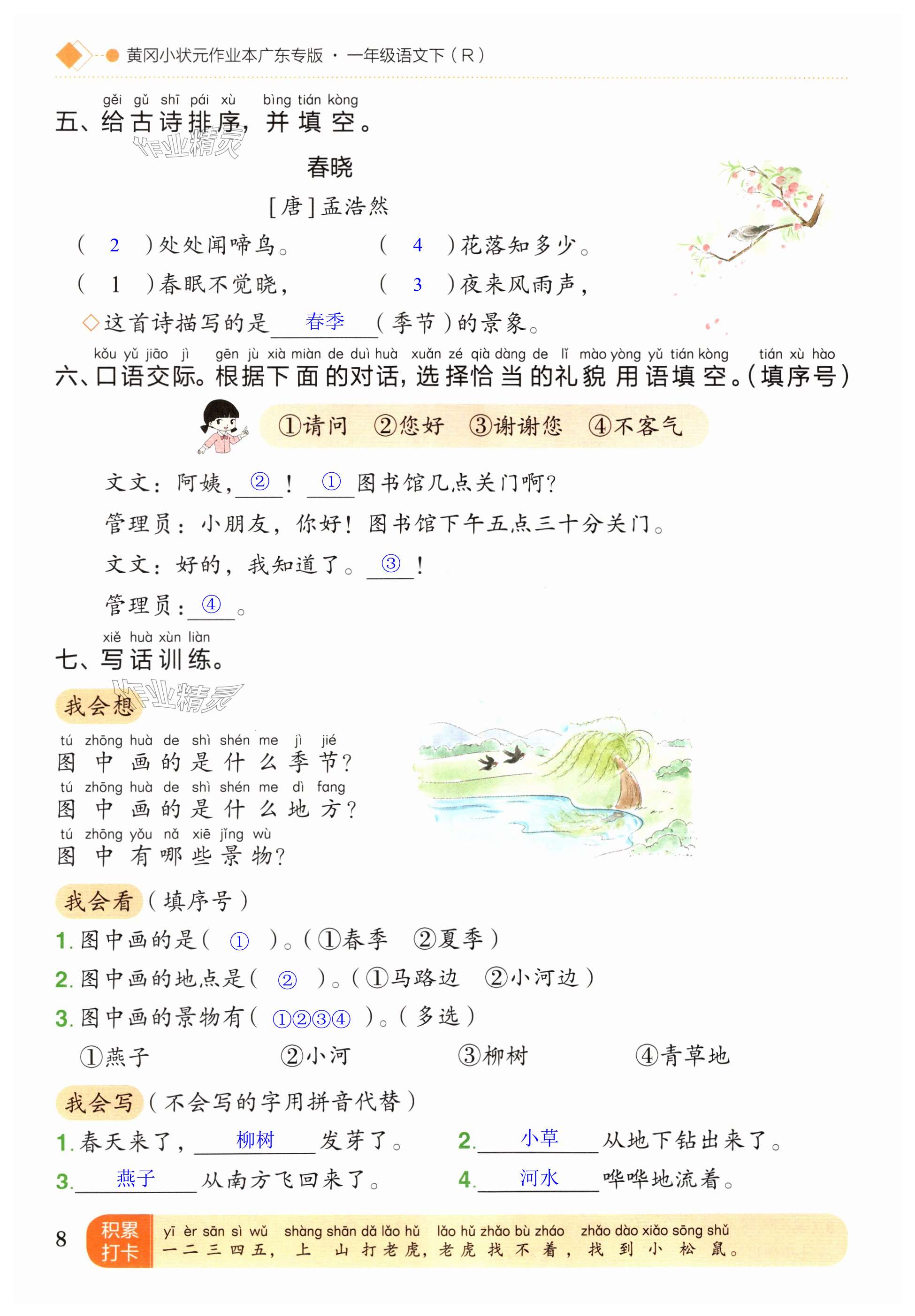注:目前有些书本章节名称可能整理的还不是很完善,但都是按照顺序排列的,请同学们按照顺序仔细查找。练习册 2025年黄冈小状元作业本一年级语文下册人教版广东专版 答案主要是用来给同学们做完题方便对答案用的,请勿直接抄袭。