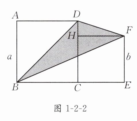 6. 如图1-2-2,把边长分别为$a$和$b$的两个正方形并排放在一起,请你计算图中阴影部分的面积.