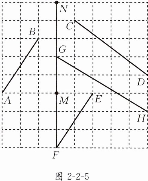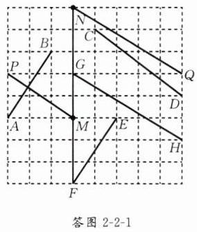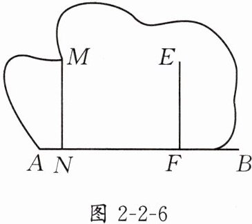 2. 如图2-2-6所示的是一块不规则木料,只有AB一边平直,木工师傅想在这块木料上截出一块有一组对边平行的木板,他用三角尺的一条直角边紧贴AB沿另一条直角边画了一条线段MN,然后用同样的方法画了一条线段EF.画完后用锯分别沿MN,EF所在直线锯开就截出了一块有一组对边平行的木板,请你用所学的几何知识说明这样做的道理.