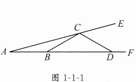 1. 如图1-1-1,$\angle EAF = 15^{\circ}$,$AB = BC = CD$,则$\angle ECD$等于( ).