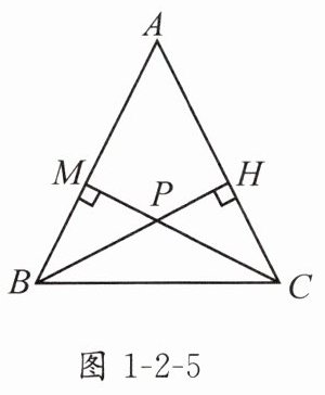 7. 如图1-2-5,在△ABC中,AB = AC,△ABC的高BH,CM交于点P.