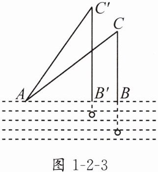 5. 如图1-2-3,已知钓鱼竿AC的长为10 m,露在水面上的鱼线BC长为6 m,某钓鱼者想看看鱼钩上的情况,把鱼竿AC转动到AC′的位置,此时露在水面上的鱼线B′C′长为8 m,则BB′的长为_______m.