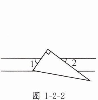 4. 一块直角三角尺放在两平行直线上,如图1-2-2,则∠1 + ∠2 = ______°.
